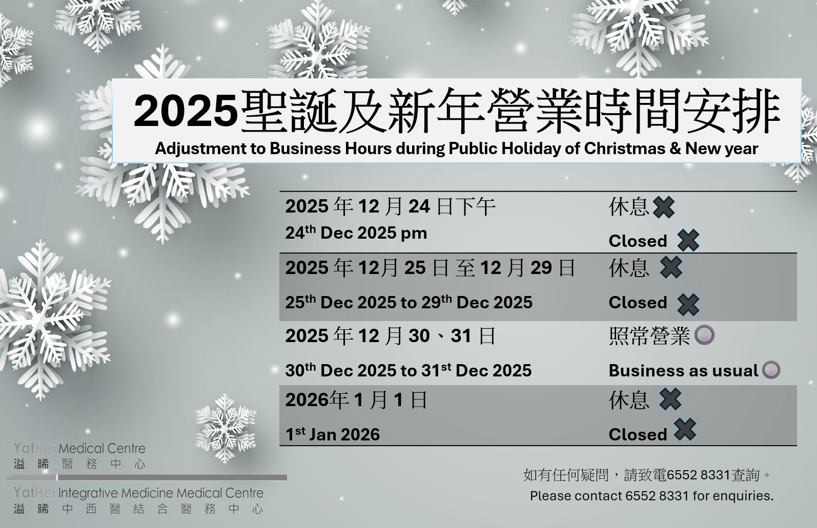 根據《香港註冊中醫專業守則》,中醫師必須對病人負起專業上的責任,因此我們致力維護最高的安全和護理標準。如果有任何疑問或疑慮,請隨時與我們聯繫。